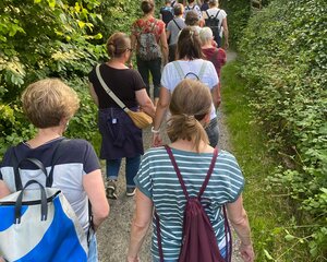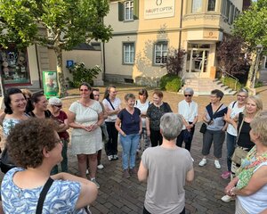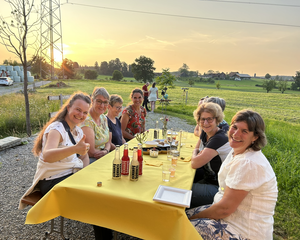Am Mittwoch, 11. Juni 2025, starteten 25 Frauen bei wunderbarem Wetter und warmen Temperaturen beim Dorfbrunnen im Flecken Rothenburg Richtung Grossmatt. Der Weg führte uns hinter dem Fläckehof-Quartier zum Huobenfang-Brüggli und via Buzibach zum Ziel in die Grossmatt, wo uns Gastgeberin Marianne Bühlmann und Hobby-Astrologe Beat Bühlmann bereits erwarteten.