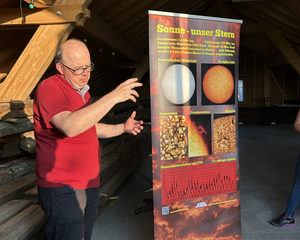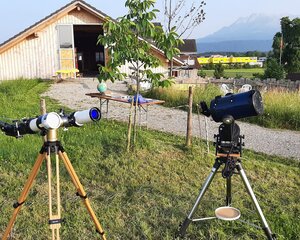 Die Fernrohre waren schon installiert und luden ein, die Sonne zu beobachten. Beat erzählte uns Interessantes über die Sonne und den Mond, über Sommer-Vollmondnächte und über die Besonderheiten der verschiedenen Sternzeichen.