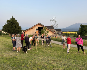 Der einladende Platz hinter dem Bauernhof Grossmatt war ideal, den Sonnenuntergang zu geniessen und gemütlich zusammenzusitzen. Für Speis und Trank war gesorgt und es wurde munter diskutiert über Gott und die Welt und natürlich über Sonne, Mond und Sterne.