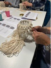 Unter professioneller Anleitung von Judith Bucher Wolf schufen die Teilnehmerinnen des Kurses ein wunderschönes Windlicht. Hatte man mal den «Dreh» raus mit dem Knüpfen, war das Makramee-Knüpfen eine kreative und entspannende Aktivität. Das fertige Licht bringt sicher viel Freude in die Räume der Teilnehmerinnen.
